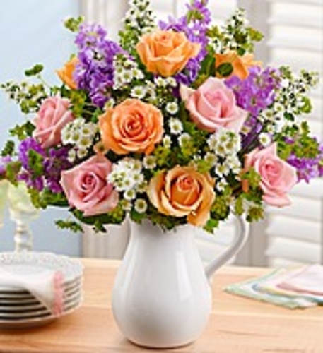 So soft and so pretty this arrangement is that we call it ENCHANTMENT! Soft creamy pastel roses, white lilies and asso