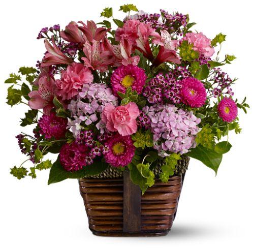 A Charming Basket, basket style will vary based on avaliability, is filled with a delightful arrangement of pretty pi